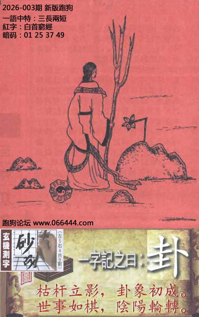 003期新版跑狗一字記之曰:【卦】